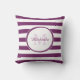 Een moderne paarse en witte dikke streep vierkant werpt kussen. Pas dit strakke patroon aan door jouw naam en monogrammed initiaal toe te voegen. Het ontwerp van dit microgram maakt deel uit van het Magenta Paarse Stripes Bedroom Decor Summer Color Collectie.