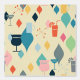 Mid Century Modern patroon van cocktails, sterbursts en diamanten in een palet van crème, turquoise en sinaasappel van 1950.