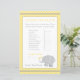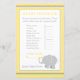 Baby shower 'Raad eens de prijs'-spelkaart bevat een schattig klein pasgeboren baby-olifant kalf met hartvormige spetters en aangepaste tekst. Het ontwerp combineert een patroon van klassieke diagonale strepen met afspeelbare poka-stippen en omvat een modern genderneutraal kleurenschema van zonneschijngeel, grijs en wit.