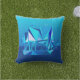 Mid-Century Modern PH - geometrisch digitaal schilderen van een klipperschip in tinten van oceaanblauw, van licht aqua tot diep kobalt buitenkussen