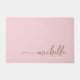 Vrouwelijke elegante minimalistische moderne gouden monogram naam script handtekening op maat gemaakte roze deurmat. Met voornaam in een mooie handlettering zwiertje lettertype kalligrafie (of typografie) in goud op roze of babyroze achtergrond. Mooie stijlvolle vrouwelijke huisverwarmingscadeau, ook voor verjaardag, jubileum, bruidsfeest, trouwen, vrijgezellenfeest en het is voor de meid die van schone minimalistische dingen houdt.