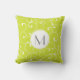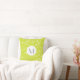 Een grillig modern ontwerp met een wit krulpatroon tegen een limoengroene achtergrond. Pas het monogram aan met uw initiaal of naam door de knop "Aanpassen" te selecteren. U kunt lettertypen en lettertypekleur wijzigen. De achterkant van het kussen is minus het monogram en medaillon voor veelzijdigheid bij het weergeven van het kussen op twee verschillende manieren.