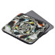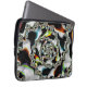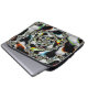 Deze laptophoes bevat een abstracte, psychedelische, fractale kunst in zwart-wit met gele, oranje, blauwe en groene accenten.