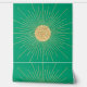 Elegant glanzend faux gold sunburst Minimalistisch zonnemunt ontwerp, met een mystieke gouden kleur zon en stralen magisch symbool, samengesteld met een cirkel en lijnen geometrische vormen, op een mintgroene achtergrond. Deze hemelstralende zonneschijn brengt positieve en gelukkige energie.