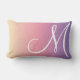 Deze moderne lumbale kussen zijn voorzien van een minimalistisch ontwerp met een wit, te groot monogram op een kleurrijke gele, roze en paarse gradiëntachtergrond.