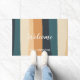 Moderne geometrische strepen aangepaste familienaam doormat met "Welkom" in Calligrafie Script.