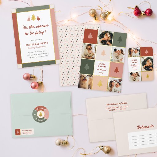 Blijf georganiseerd in stijl met onze Agenda. Een boeiende 5-foto collage schittert in pastelkleuren en goud, naast de boodschap "Merry and Bright" in speels sans-serif lettertype. Personaliseer het met uw familienaam en jaar. Op de achterkant staat een patroon van kerstballen voor een jaar van feestelijke herinneringen.