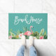 Modern Brush Script, Waterverf Tropische Bloemen met Roze Flamingo Beach House Deurmat