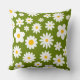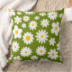 Grillig modern werpkussen met verspreide platte witte madeliefjes met gouden zonnebloemcentra op een gewaagde groene achtergrond. Contact voor hulp bij het aanpassen of voor personalisatie.