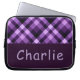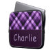 Moderne Plum Paarse Plaid Monogram Laptop Mouw Sleeve