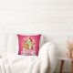 Een kussen met een helder en feestelijk kerst grafisch ontwerp. In de tekst staat Vrolijk Kerstfeest & Gelukkig Nieuwjaar. Ontworpen met een boomvormige heuvel van cadeaus met feestelijke sneeuwvlokken, sterretjes, kerstballen en glowy uitziende glinstertjes. Pijnboomnaalden en boomvormige illustratie ook opgenomen in dit vakantie afbeelding. De achtergrond is een levendige roodachtige roze kleur.