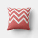 Een helder chevron streepontwerp met een bijpassend massief oppervlak voor het toevoegen van jouw naam, monogram of andere tekst. De achterkant van het kussen is zonder het monogram om u veelzijdigheid te geven in hoe u het kussen weergeeft. Hier weergegeven in een levendige zalm en wit, vervang de voorbeeldnaam in de ontwerp-sjabloon met jouw naam en je bent helemaal klaar.