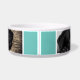 Moderne abstracte turquoise achtergrond met hondennaam in zwart script en 2 foto's. Deze hondenkom wordt geleverd met een hondennaam in zwart schrift en 2 foto's - personaliseer de kom met de naam van uw hond en voeg twee van uw foto's in de sjabloon.
