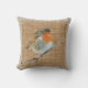 Moderne waterverf Robin Bird, faux burlap textuur kussen.