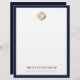 Maak een blijvende indruk met onze Modern Letterhead met Custom Logo. Dit briefhoofd ontwerp is voorzien van een ingelijst ontwerp met een gouden geometrische logo embleem en uw bedrijfsnaam en tagline elegant gepresenteerd in de klassieke typografie. De massieve marineblauwe achterkant met een aanpasbare logo en ruimte voor uw website draagt bij aan de samenhang van het algehele ontwerp. Elk blad straalt professionaliteit en sophisticatie uit, waardoor het perfect is voor officiële correspondentie, facturen of belangrijke zakelijke documenten. Verhoog uw merkidentiteit met dit prachtige briefhoofd.