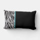 Ontwerper van moderne zebrapatroonlumbale kussens met prachtige zwarte en witte zebra, blauwe accentkleur en zwarte achtergrond aan beide zijden. Dankzij het tweezijdige ontwerp kun je van de ene kant naar de andere overschakelen om wat kleur en karakter naar je studentenkamer te brengen, woonachtig, familieruimte of een tuin op decoratieve wijze.
