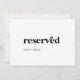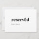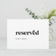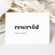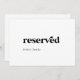Dit moderne zwarte typografische gereserveerde teken is perfect voor een eenvoudige bruiloft. De kaart is dubbelzijdig (prints aan beide zijden). Het zwarte en witte minimalistische ontwerp is voorzien van een retro maar hedendaagse lettertype met een uniek roestachtig bohemen gevoel. Ideaal voor elk seizoen. Houd het minimaal, zoals is, of voeg uw eigen grafiek en kunstwerk toe. Gebruik deze kaarten om stoelen of tafels te reserveren bij uw trouwceremonie, ontvangst of om het even welke gebeurtenis.