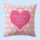 Deze gooiende kussen maken een geweldig cadeau voor je dochter die op school is of net naar een nieuwe stad verhuisd is. De kussen zijn lichtroze met witte polka stippen op de voor- en achterkant. Aan de voorkant is een donkerroze hart dat luidt: "Hoewel we ver uit elkaar kunnen liggen, ben je altijd in mijn hart!" Je kunt de naam van je dochter bovenaan aanpassen en je kunt de liefde onder het hart aanpassen. Copyright Kathy Henis
