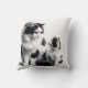 Een pluizig zwart-wit kitten en zijn moeder zitten dicht bij elkaar op een neutrale achtergrond.