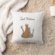 Kat moeder gooit kussen met een grijs kat van een bruine tafel op een witte achtergrond. Met het afspelen van afspeelbare typografie kunt u uw eigen tekst toevoegen. Een schattig geschenk voor Moederdag of toevoeging aan je decor.