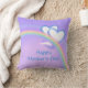Gooi kussen met mijn ontwerp van twee witte en blauwe harten over een regenboog in een paarse hemel. Er staat "Happy Moederdag" in de tekst.