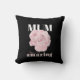 Dit Moederdag-kussen heeft "Mum you're Amazing" in een moderne typografische stijl op een zwarte achtergrond. In het midden is een grote roze waterverf bloei en op de achterkant is een kleinere enkele bloei.