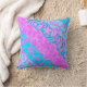 Deze grafische hibiscus-bloemen interspelen en storen in een gestreept patroon. Ze creëer een patroon dat doet denken aan het patroon dat wordt gebruikt in de retro-aloha shirten van de jaren zestig en zeventig. Het voorontwerp is diagonaal, de rug van de kussens heeft een metgezel verticaal gestreepte druk.
