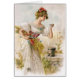Jeune dame dans un puits prenant un verre. Elle tient une feuille de grains et de fleurs sous son bras. Cadeaux de Beaux-Arts pour les amateurs Vintages et nostalgiques.