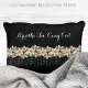 Améliorez votre sanctuaire confortable avec l'oreiller à lancer "Cozymaxxing Mindful Moments Relaxation". Ce coussin magnifiquement conçu est plus qu'un simple accent décoratif, c'est un rappel de donner la priorité à la relaxation et de trouver des moments de paix dans votre vie quotidienne. Doté d'un arrière - plan noir sophistiqué, d'un délicat motif floral et du doux rappel de "Breathe In, Cosy Out", ce coussin apporte style et tranquillité à votre espace. Imaginez vous plonger dans votre chaise préférée ou vous allonger sur votre canapé, enveloppé par le confort doux de ce coussin. Le message réconfortant et l'élégant design floral créent une expérience visuelle et tactile qui vous encourage à ralentir, à respirer profondément et à embrasser le moment présent. Que vous soyez relaxant, en train de lire douillement, ou tout simplement en ajoutant une touche d'élégance à votre décor, ce coussin vous aidera à créer une ambiance sereine et accueillante. Il fait également un cadeau réfléchi pour les amis, la famille, ou toute personne qui apprécie l'art du cozymax et la beauté du design floral.