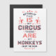 Retro Circus Style design en rouge et bleu marine sur le blanc avec étoiles, bannières et accents design présente des mots dans l'art de la typographie de style festival de l'état, "En fait, c'est mon cirque ce sont mes singes. Profitez Du Spectacle."