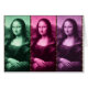 Het meesterwerk van Da Vinci driemaal (x3), afgezet in kleuren groen, framboos en pruimpaars... met dunne verticale linten van dierenprint.