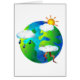 Un globe terrestre avec soleil et nuages, pluie et éclairs - un monde de météo changeante.