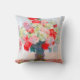 Sierkussen met het bloemschilderij van Claude Monet. Mooie rode, gele en witte pinda's in een blauwe vaas. Een geweldige cadeau van Monet voor supporters van indrukwekkende tonen en Franse kunst.
