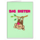 Un mignon singe avec une fleur rose balançant par la queue d'une branche et un texte rose dit "Grande Soeur" sur les T-shirts, porte - clés, cartes, autocollants, sacs fourre-tout, magnets, mousepads, coussins et autres vêtements et cadeaux de grande soeur !