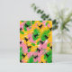 apatroon afdrukken met bladeren in roze, groen en geel.