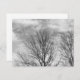 Een monochroom afbeelding van herfstboom topjes tegen een bewolkte lucht.