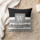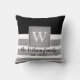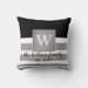 monogram aangepaste kussen sepia en witte strepen met een verstoorde stijl met donkerbruine tekst om zich aan te passen voor een uniek decor thuis.
