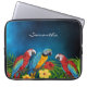 Monogram blauw palmbladerblad laptop sleeve