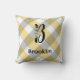Monogram initiaal waterverf bloem gingham blauw grijs Sierkussen. Brief B