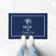 Monogram Blue White Palm Tree Personalized Deurmat