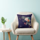 Een kleurrijke spray van grafische botanische bloemen simuleert deze gooiende kussen en kan gepersonaliseerd worden met drie monogram initialen. De achtergrond is een rijke marineblauw.