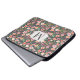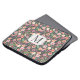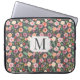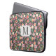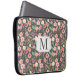 Zacht grijze achtergrond met vlot floreel naadloos patroon in zachte lentetonen, doorsijpelen, perziken en slijpen met aangepast monogram in serif font