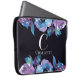 Monogram Donkerblauw met Paarse en blauwe bloemen Laptop Sleeve