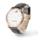Dit stijlvolle, stijlvolle rozen mannen-horloge is versierd met een robuuste zwarte band, een wit gezicht en gepersonaliseerd met monogram en naam. U kunt het monogram en/of de naam eenvoudig wijzigen en desgewenst de zwarte verdeelstreepjes verwijderen. Wat een geweldig geschenk voor hem - een beste man, groomsman, bode, afstuderen, vaderdag, verjaardag, of een andere speciale gelegenheid. Alle rechten voorbehouden © 2024 Alan & Marcia Socolik.