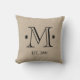 Voeg je eigen monogram, initiaal, familienaam en trouwdag of verjaardagsdatum toe.. faux jute linen burlap rustic chabby country chic werpen kussen.