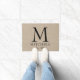 Je kunt je eigen monogram, initiaal, familienaam en trouwdag of verjaardagsdatum toevoegen aan faux jute linen burlap rustic chabby country chic door mat.