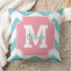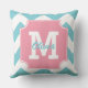 Monogram Gepersonaliseerd Blauw en Roze Chevron Kussen