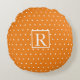 Monogram Initiaal Sinaasappel Witte pokstip Rond Kussen