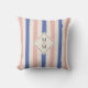 Gooi het kussen met een lichtroze en maïsblauw en wit gestreepte motief met uw monogram initialen in donkergrijs over een lichte neotral diamantvorm. Alle kleuren zijn aanpasbaar.