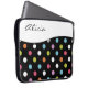Polka dot monogram laptophoes met kleurrijk polka puntpatroon en monogram embleem dat u met om het even welke naam, initialen, of bericht kunt personaliseren. Dit ontwerp beschermt uw draagbare elektronica zoals uw netbook, laptop of tablet in stijl en maakt het uw eigen elektronica.